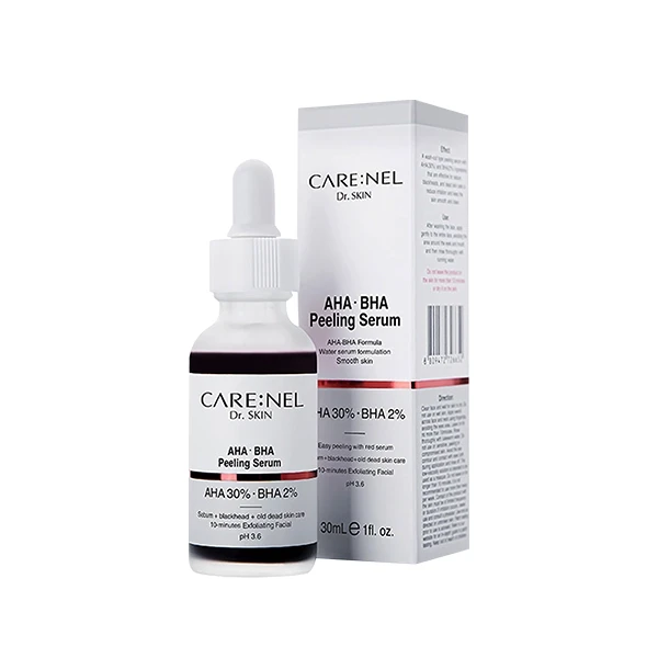 Care Nel AHA BHA Peeling Serum is an exfoliating treatment designed to promote smoother, clearer skin. Formulated with a blend of Alpha Hydroxy Acids (AHA) and Beta Hydroxy Acids (BHA), this serum gently exfoliates dead skin cells, unclogs pores, and helps reduce the appearance of acne, blackheads, and uneven skin texture. It is suitable for those with oily, combination, or acne-prone skin types.