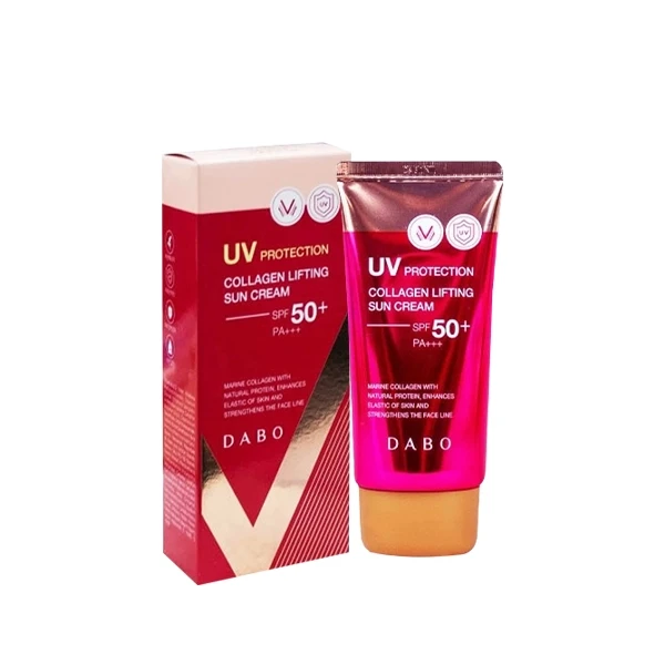 Dabo UV Protection Collagen Lifting Sun Cream is a multi-functional sunscreen designed to provide high-level sun protection while also improving skin elasticity. It offers broad-spectrum protection against UVA and UVB rays, with SPF 50+ and PA ratings, making it suitable for daily use in protecting the skin from sun damage.