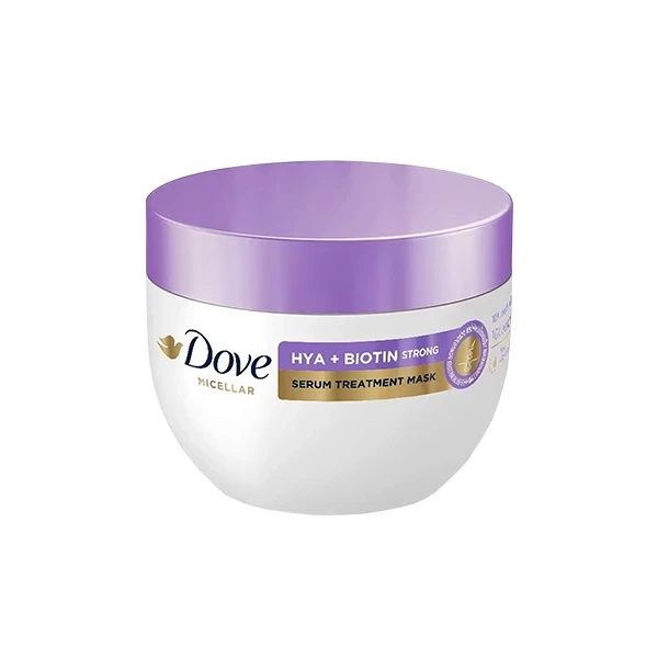 Revitalize your hair with the Dove Micellar HYA Biotin Strong Serum Treatment Mask. This powerful mask combines the benefits of micellar water, hyaluronic acid, and biotin to strengthen and nourish your hair from root to tip. Ideal for damaged and brittle hair, this treatment mask deeply conditions, leaving your hair feeling soft, shiny, and resilient. Enjoy salon-quality results at home with this intensive care solution.