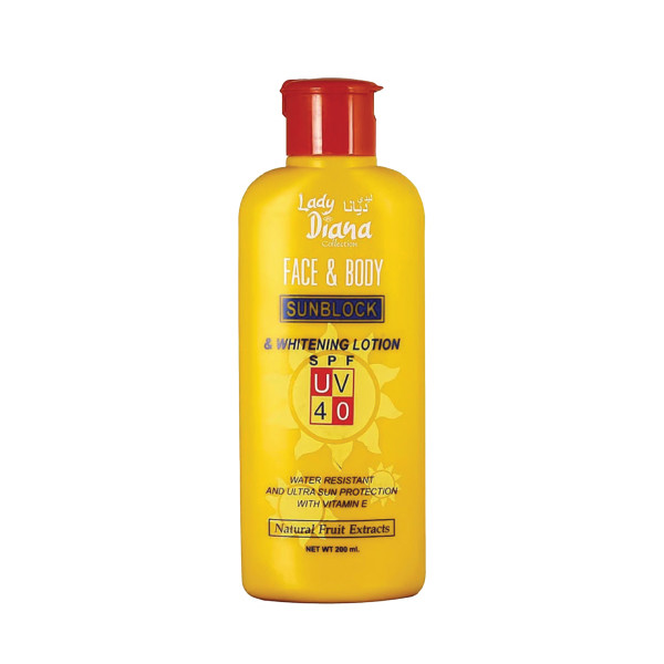 contain natural fruit extracts that offer deep and long lasting moisture to your skin. Lady Diana’s sun care products are non-greasy, water resistant and provide a high SPF level protection for children and adults. A light Milky Sun block lotion with a powerful sunscreen agent to protect your skin from damage by harmful UVA & UVB rays. Water and perspiration resistant. Light and Easy to use. This lotion Includes Vitamin E and aloe extract for moisturizing. That makes your outdoor life more safety and enjoyable Benefits:
