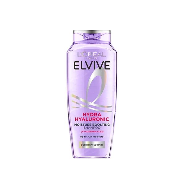 L'Oréal Elvive Hydra Hyaluronic Moisture Boosting Shampoo. Enriched with hyaluronic acid, a powerful moisture-binding agent, this shampoo gently cleanses while delivering deep hydration to dry, lifeless hair. It leaves your hair feeling soft, bouncy, and visibly fuller with every wash.
