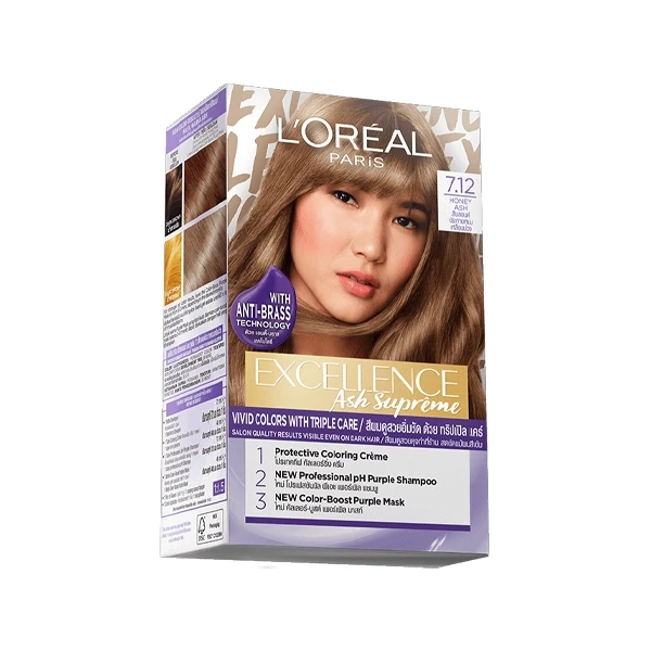 Change up your look with L'Oréal Paris Excellence Ash Supreme Permanent Hair Color which is formulated specifically for dark Asian hair. Achieve Excellence as promised with the New Triple care & anti brass purple technology (for ash shades) counters the brassiness on colored hair and develops vibrant and vivid shades. ​