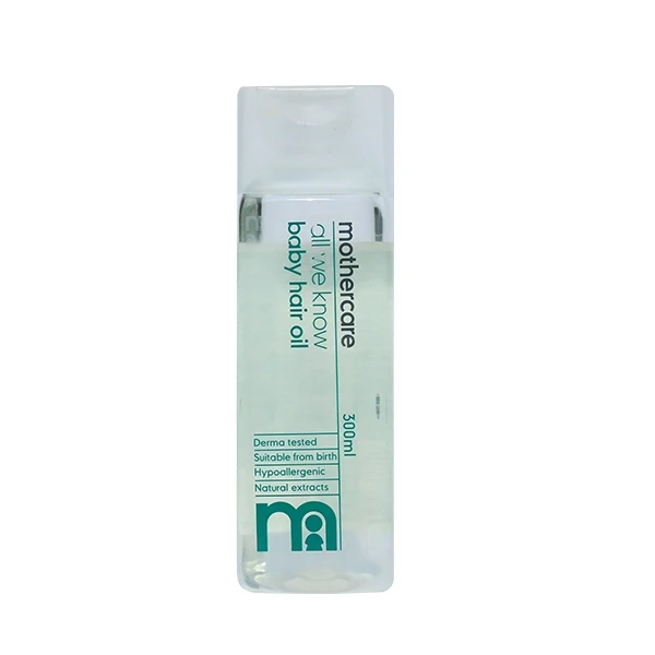 All Mothercare's specialist know-how goes into our All We Know Baby Hair Oil. The mild formulation helps strengthen, nourish and stimulate the scalp, leaving your baby's hair naturally soft and healthy. It contains oilve oil and chamomile extract.