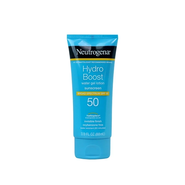Neutrogena Hydro Boost Water Gel Lotion Sunscreen with Broad Spectrum SPF 50 delivers superior broad spectrum UVA/UVB protection and hydration with a water-light, refreshing feel. This water-resistant sunscreen lotion with SPF 50 leaves skin looking healthy and moisturized for up to eight hours without any greasy residue or white marks. The non-greasy sunscreen has a light, clean feel and layers invisibly under makeup. Neutrogena® Hydro Boost Water Gel Lotion Sunscreen with Broad Spectrum SPF 50 is oil-free and non-comedogenic, which means it won’t clog pores.