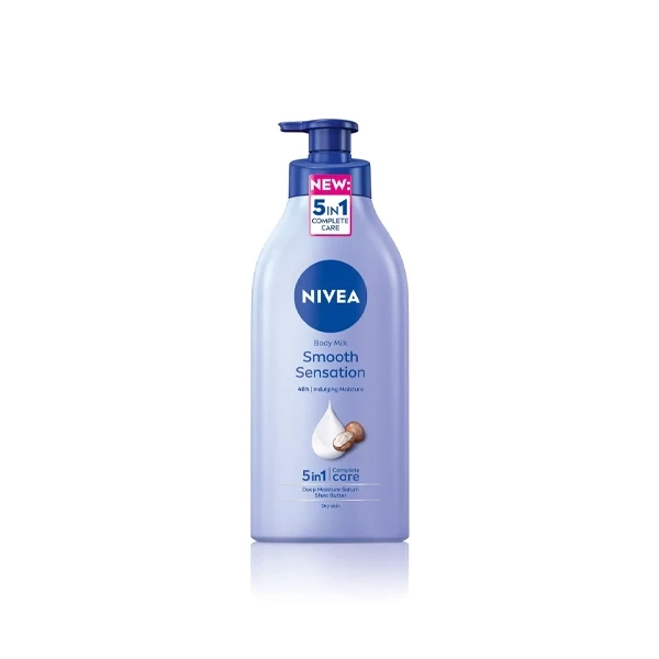 Transform your dry skin with the NIVEA Smooth Sensation body lotion. Providing 5in1 Complete Care: 1. 48h Deep Moisture 2. Smooth skin feel 3. Fast absorbing 4. Indulging Care 5. Healthy looking skin
