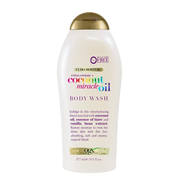 After indulging in a luxurious bath bomb or during a refreshing shower, reach for a loofah and hydrate your skin with this creamy, moisturizing body wash. Enriched with coconut oil, it effectively moisturizes dry, ashy skin and provides long-lasting hydration, especially during the colder seasons. Experience island vibes with a light tropical blend of classic coconut oil, vanilla bean extract, and tiare flower in a paraben and sulfate-free formula, perfect for sensitive skin. The ultra-hydrating OGX® Coconut Miracle Oil body wash suits oily, dry, normal, and combination skin. Lather, rinse, and repeat to help your skin retain moisture, keeping it soft and smooth for quality skincare results.