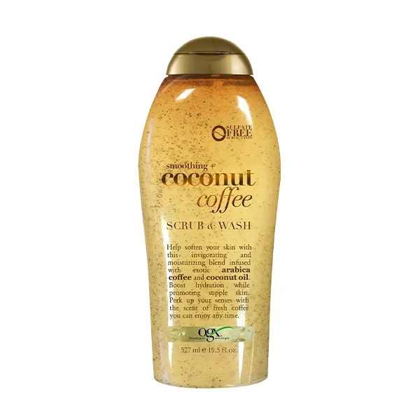 Renew and moisturize your skin with OGX Smoothing + Coconut Coffee Exfoliating Body Scrub & Wash. This daily body wash gently exfoliates to remove dry skin, leaving it soft, smooth, and radiant. Free from parabens and sulfate surfactants, its unique formula features exotic arabica coffee to enhance moisture and awaken the skin, while coconut oil provides hydration and adds luster. The invigorating aroma of rich coffee uplifts your senses, transporting you to a faraway paradise. For best results, massage the coffee body scrub onto wet skin daily, focusing on areas needing extra exfoliation, and follow with OGX Smoothing + Coconut Coffee Body Cream for added moisture.