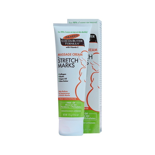 Palmer's Cocoa Butter Formula Massage Cream helps visibly improve skin elasticity and the appearance of stretch marks. Pure Cocoa Butter and Shea Butter, Natural Oils, Collagen, Elastin and Lutein keep skin moisturized and supple for 48 hours allowing skin to stretch more easily. Widely recommended for stretch marks during and after pregnancy or weight fluctuation. This cream concentrate formula is ideal for stretch mark prone areas such as tummy, hips, thighs and bust.