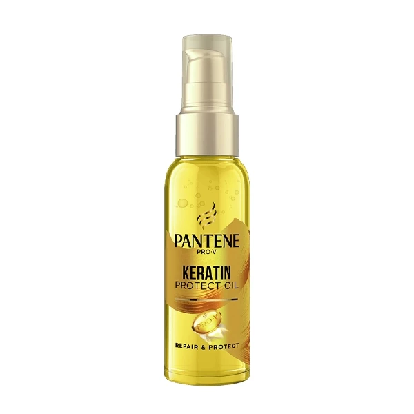 1.Pantene Pro-V Keratin Protect Oil gives your hair new life with just one drop. Pro-V Nutrients blends infused with Vitamin E nourish hair deeply to instantly soften it and enhance radiance.