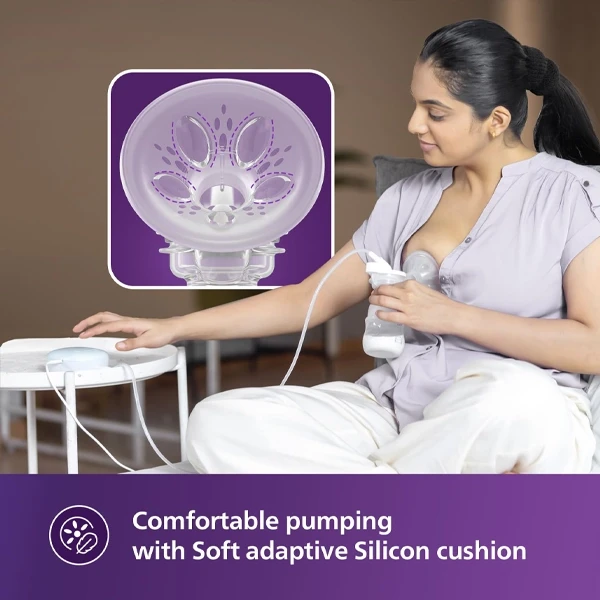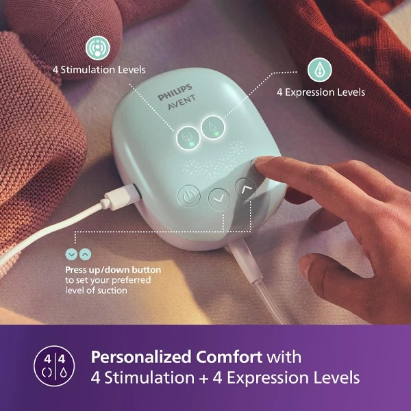 Philips Avent Portable Electric Breast Pump- | No.1 Brand Recommended by Moms Worldwide | Soft adaptive Silicon Cushion | One Size Fits all | 4 + 4 Expression and Stimulation settings | Quiet Motor | USB Charging SCF323/11