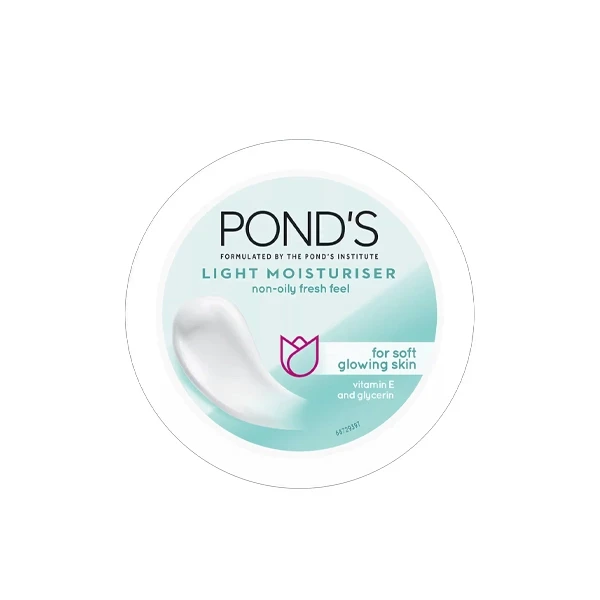 Ponds super light gel Get supple and soft skin with POND'S Light Moisturiser. This formulation is infused with glycerin and niacinamide to provide deep nourishment to your skin. The cream penetrates deep into the cells and makes your skin look and feel smooth. It comes with 24-hour moisture lock to ensure that your skin remains properly hydrated and nourished all the time. POND'S Light Moisturiser is lightweight and does not leave skin sticky. It is readily absorbed into the skin, leaving it fresh. The cream is highly effective yet very gentle, making it suitable for all the skin types. Gift it to yourself and use it twice a day to maintain your skin the way you love it!