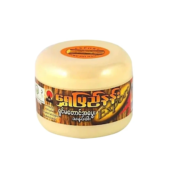 Shwe Pyi Nann Shinmataung Thanakha Whitening Powder is a traditional Burmese beauty product made from the bark of the Thanakha tree, which is known for its skin-benefiting properties. The powder is finely ground and is commonly used in Myanmar for its natural whitening, cooling, and soothing effects on the skin. Thanakha has been used for centuries to protect the skin from sun damage, reduce blemishes, and promote a brighter complexion.