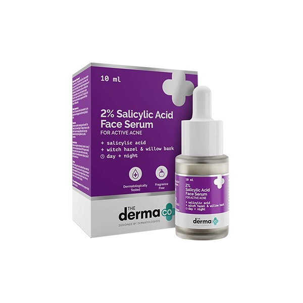 Let acne be a short story! The Derma Co. 2% Salicylic Acid Serum is a multitasking formulation that treats acne, unclogs pores, and prevents skin damage. Introduce this skincare BFF to your regimen and you're sorted! The combination of 2% Salicylic Acid & Witch Hazel exfoliates the pores' walls to prevent the appearance of whiteheads and blackheads. With no more sebum in the pores, it eventually stops the formation of acne. When pimples say hi, give them the best farewell with this super serum! Bring on the best of the filter-free YOU with your spotless, unique & youthful skin.