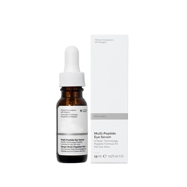 The Multi-Peptide Eye Serum is a water-based formula designed to target the appearance of common signs of aging around the eye area. This serum utilizes multiple peptide technologies to help reduce the appearance of crow’s feet and under eye wrinkles, eye bags, puffiness, and dark circles, leaving the eye area looking brighter, smoother and less puffy.